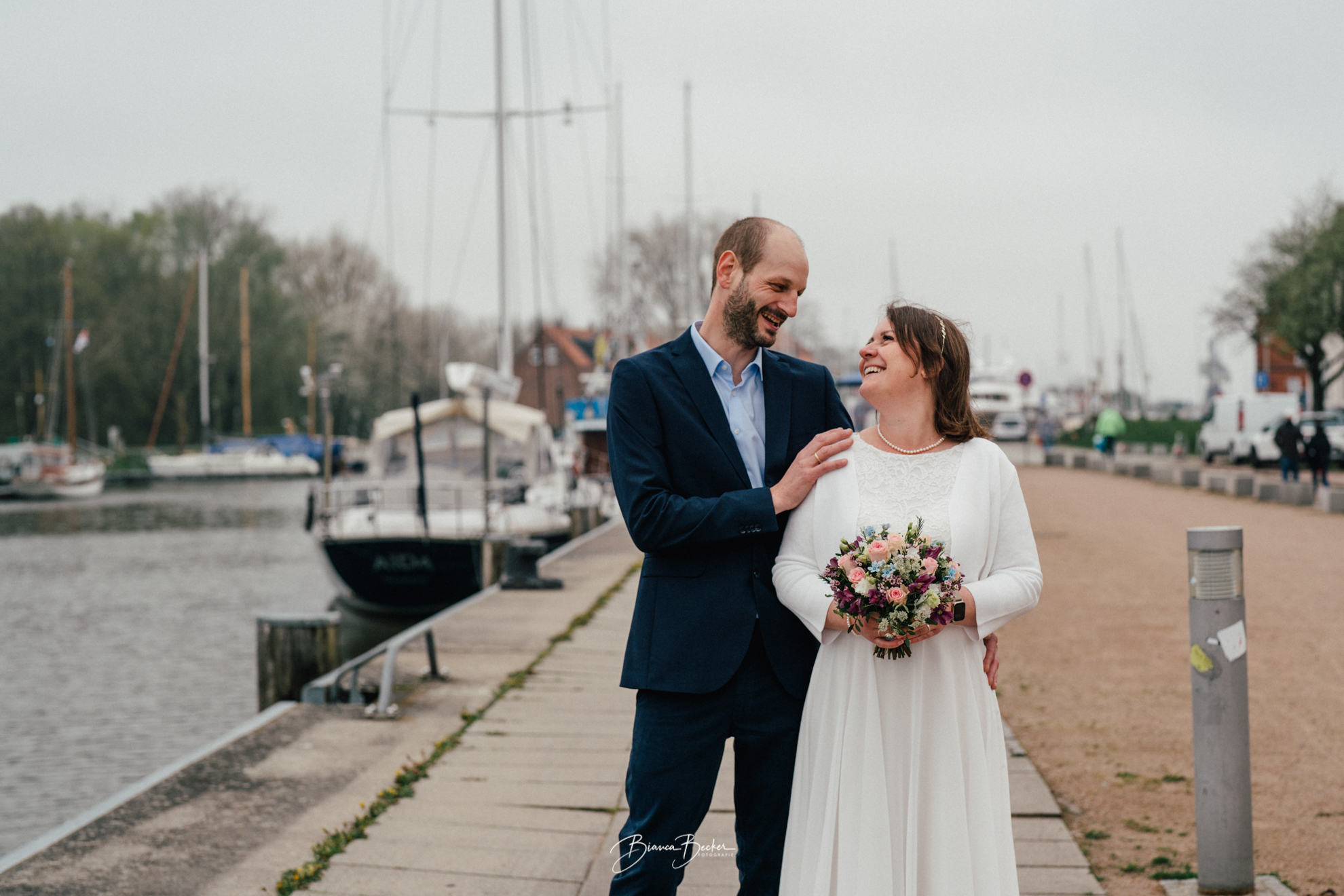 Auf dem Marktplatz und direkt am Hafen entstanden wunderschöne Hochzeitsfotos, welche die echte Atmosphäre dieses Tages perfekt einfangen. Der Tag gehörte bewusst nur dem Paar – nach unserem Shooting konnten sie die Zeit zu zweit genießen und diesen Meilenstein ihrer Liebe in Ruhe feiern. Jedes Bild erzählt die Geschichte einer Hochzeit, die sich abseits des Gewohnten voll auf das Miteinander konzentriert: authentisch, nordisch-modern und unvergesslich.
