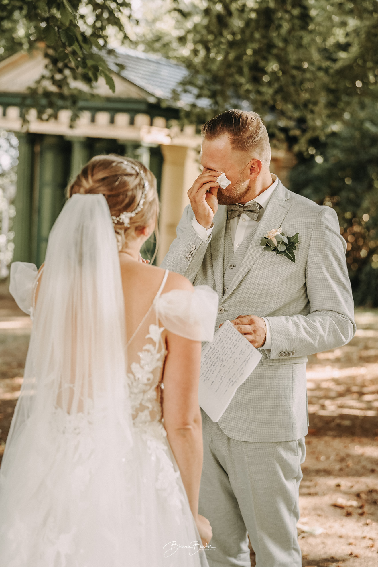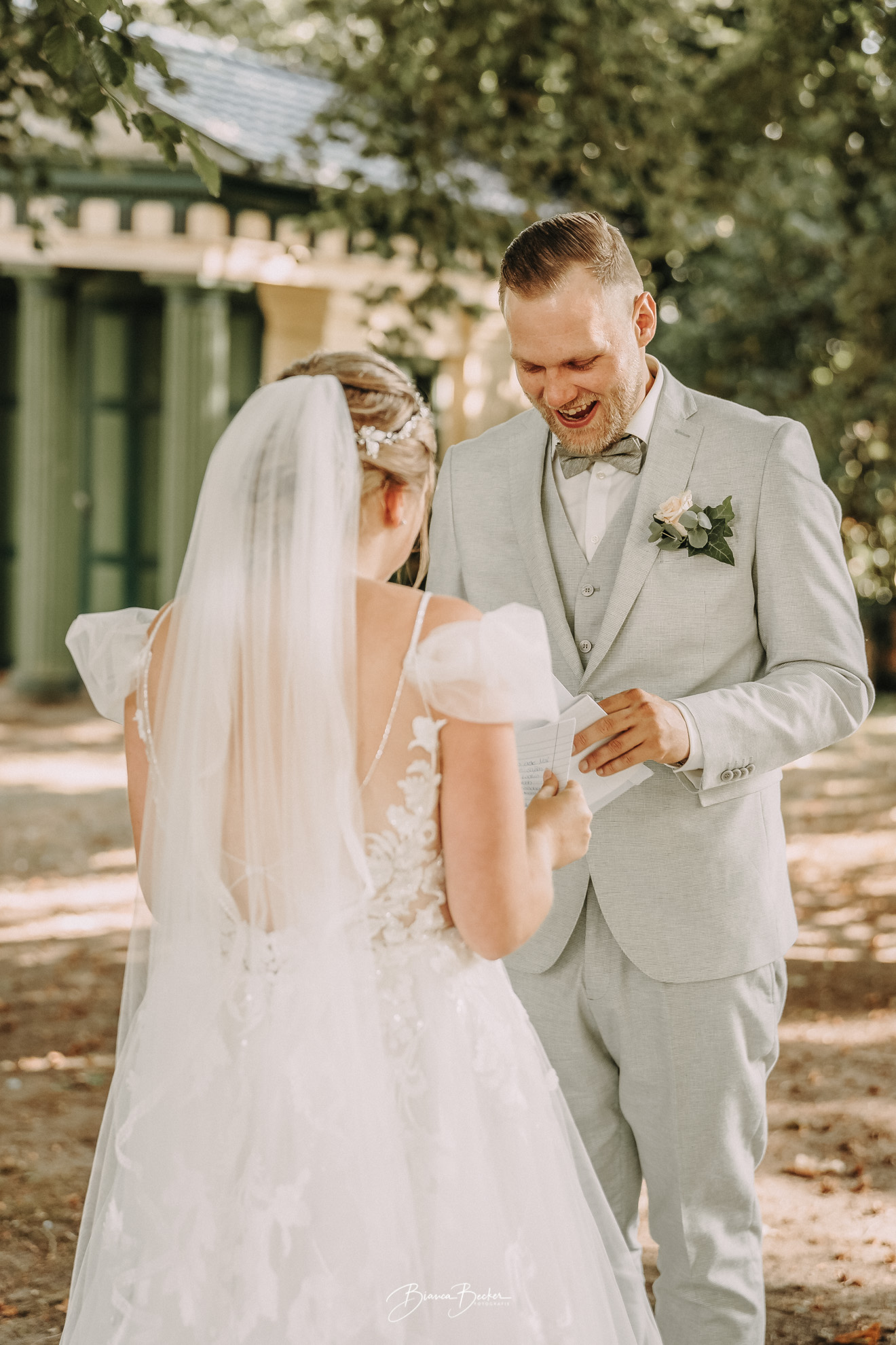 Wer es urig und persönlich liebt, entscheidet sich für eine standesamtliche Trauung im Café Langes Mühle. Die historische Wassermühle liegt idyllisch im Museumspark Langes Tannen. Während die Zeremonie im gemütlichen Trauzimmer stattfindet, bietet der weitläufige Park mit seinen alten Bäumen und dem Herrenhaus eine perfekte Kulisse für natürliche Hochzeitsfotos direkt im Anschluss.