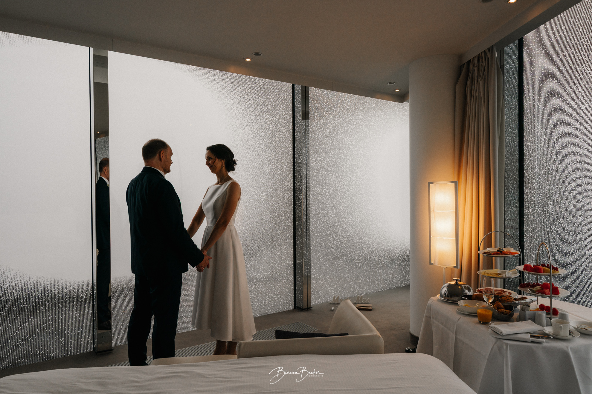 Dieses besondere Brautpaar feierte seine Elopement Hochzeit in Hamburg – modern, intim und hochemotional. Der Tag begann mit einem exklusiven Getting Ready in der beeindruckenden Elbphilharmonie. Hier durfte ich die Braut nicht nur fotografisch begleiten, sondern auch das professionelle Brautstyling übernehmen. In dieser einzigartigen Kulisse entstanden bereits die ersten stimmungsvollen Aufnahmen, bevor die intime standesamtliche Trauung in Hamburg Mitte folgte.