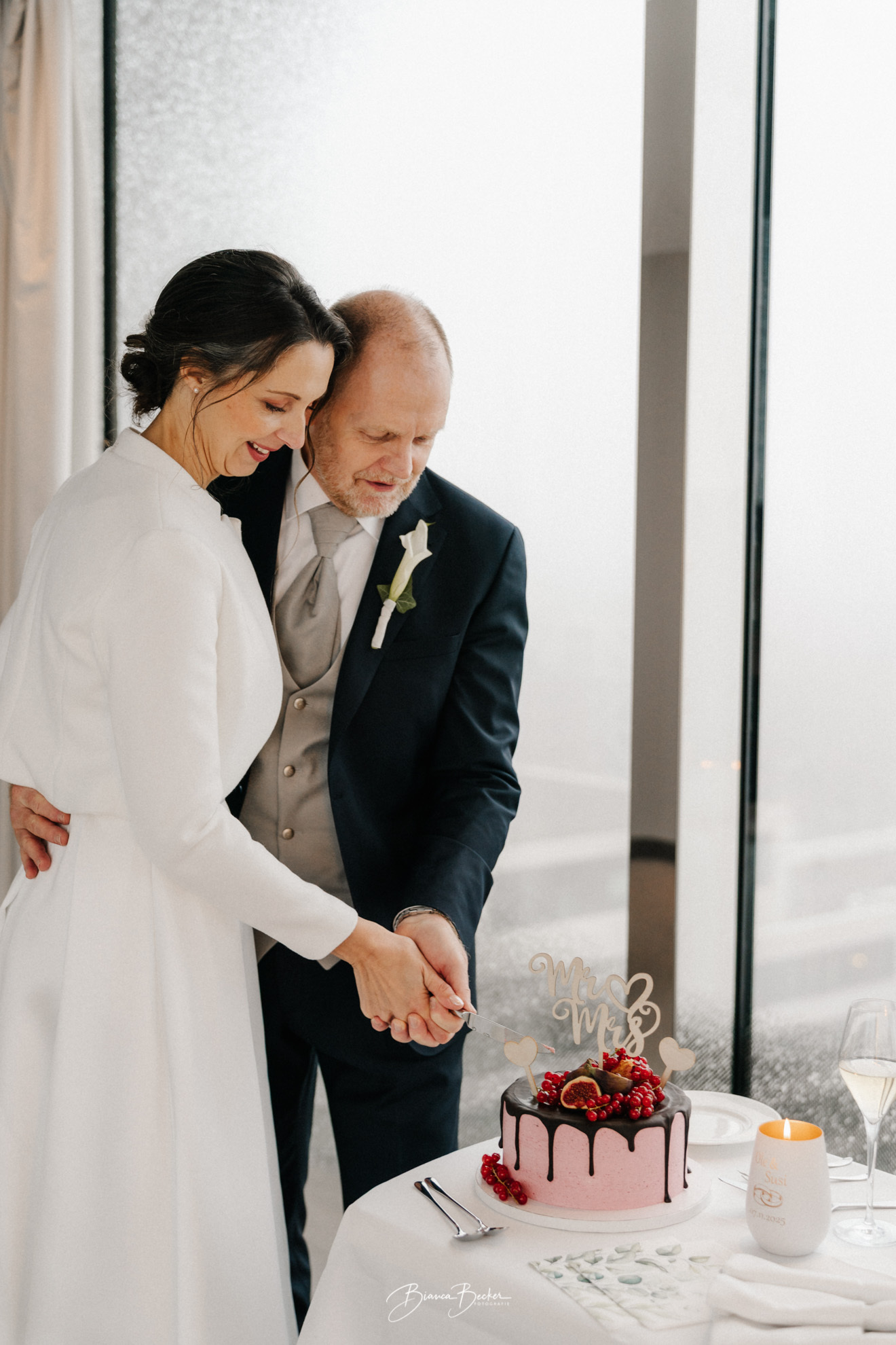Ein besonderes Highlight waren die anschließenden Brautpaarfotos im mystischen Novembernebel. Diese einzigartige Wetterstimmung verlieh den Bildern eine fast magische Tiefe und unterstrich die echte Verbindung des Paares. Mein Fokus lag bewusst auf ungestellten, authentischen Bildern im Stil einer Reportage: vom Tortenanschnitt über liebevolle Details bis hin zu den stillen Momenten zu zweit.